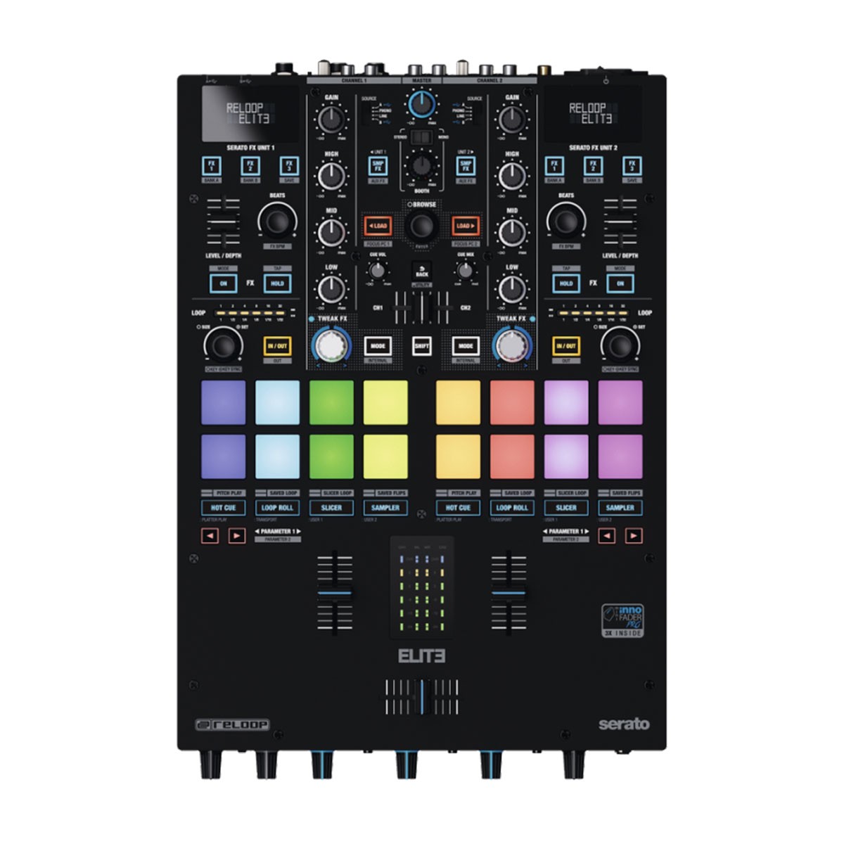 Reloop Elite, επαγγελματικός DVS μίκτης για το Serato, 2 καναλιών που έχει δημιουργηθεί σε συνεργασία με τους μεγαλύτερους DJs που συγκεντρώνει πανίσχυρες λειτουργίες.